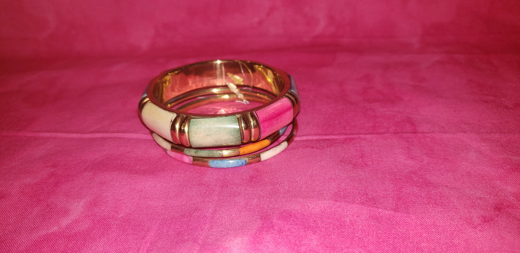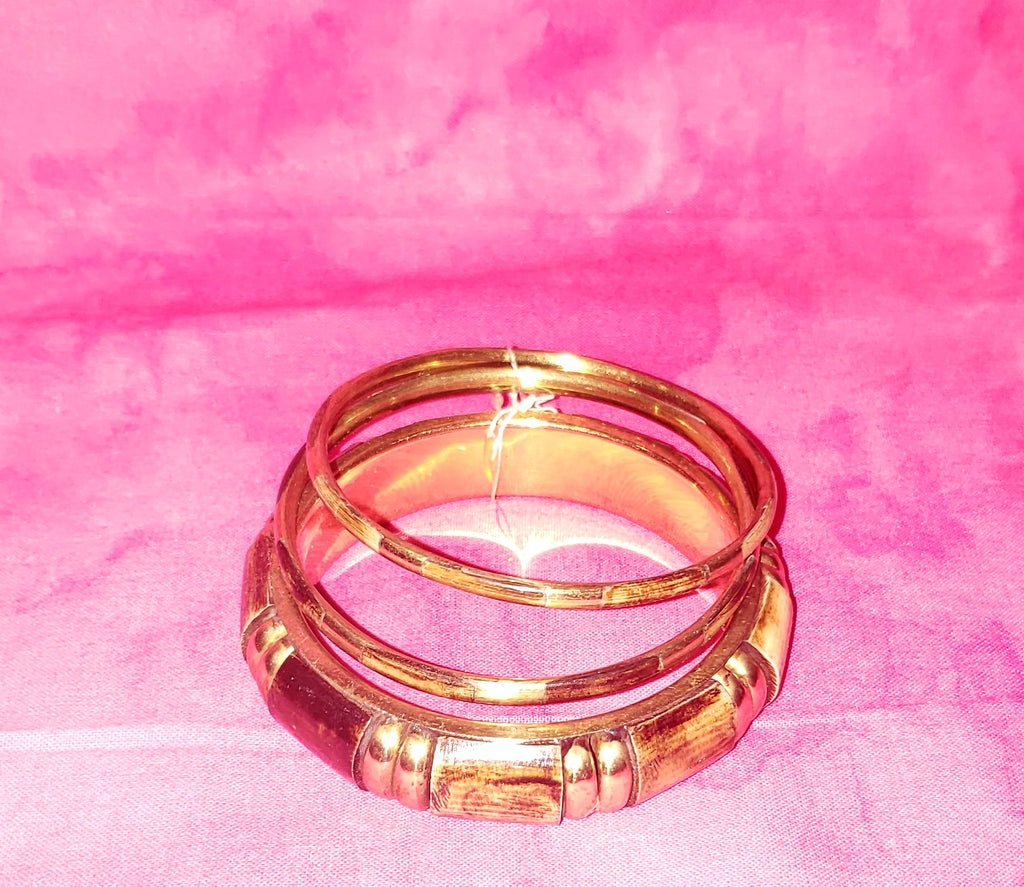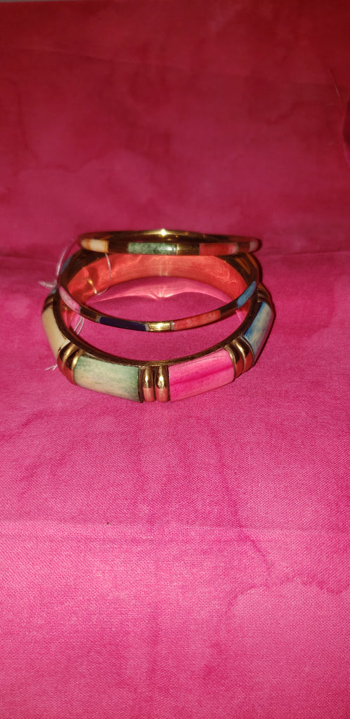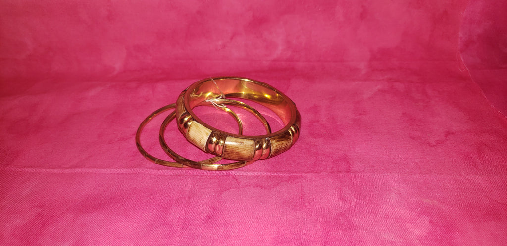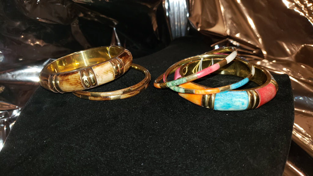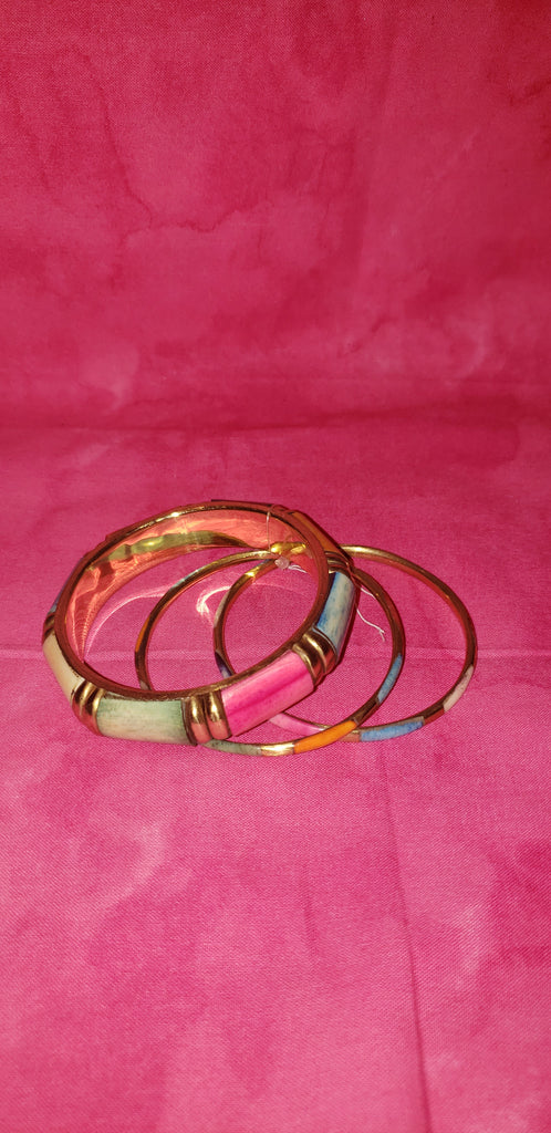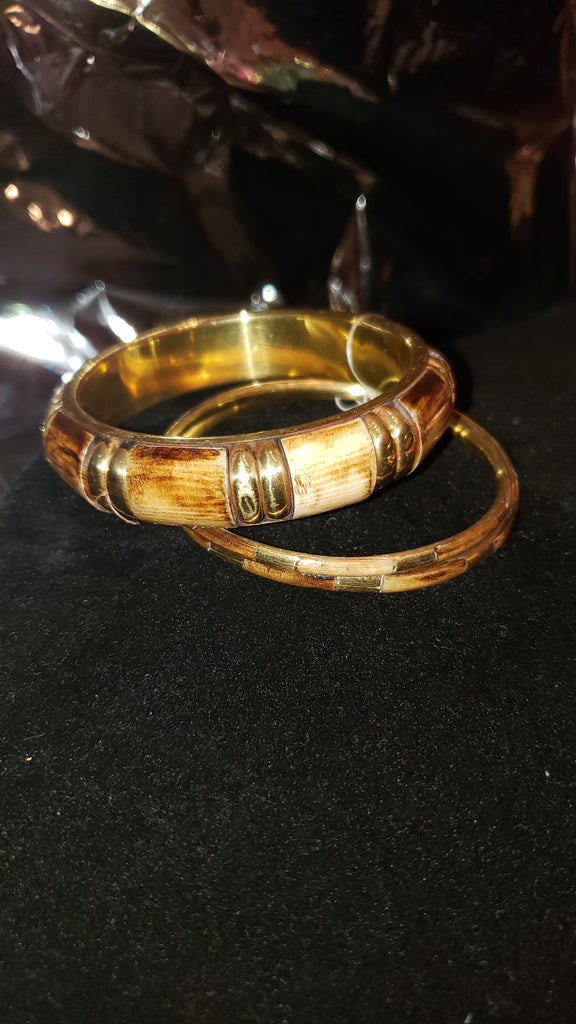 Brass and painted wood like bangle bracelet set