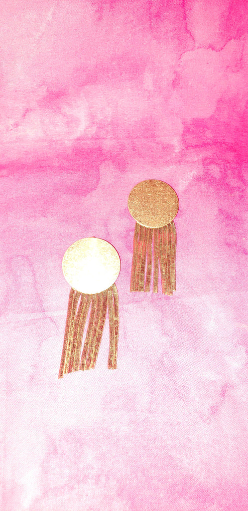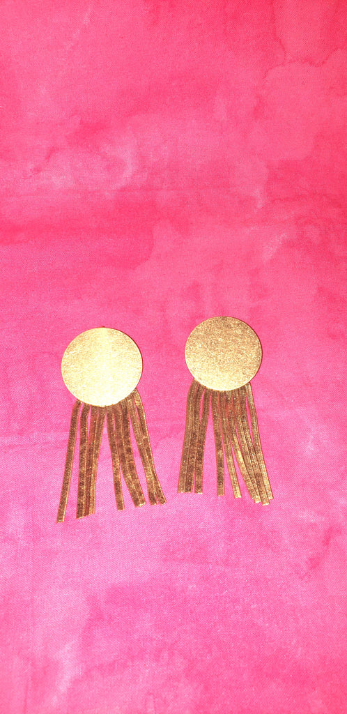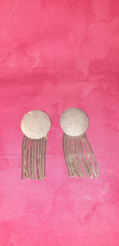 These earrings are giving a classy industrial vibe!! With the large quarter sized base in gold or silver and the hanging herringbone details, these earrings are definitely a show stopper!! These eaarings will dress up any outfit, they are perfect for date night, any classy affair or when you want to be extra at work!!